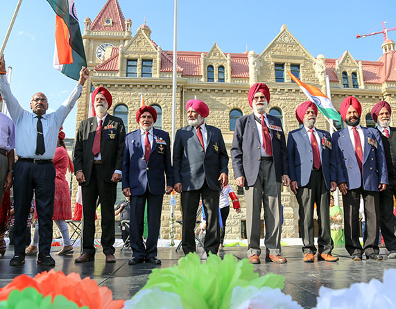 Several volunteers and sponsors made this celebration a possibility. Many dignitaries were also present at the event while the Indian Ex-Servicemen Immigrant Association of Calgary raised and hoisted the Indian tricolour. The whole City Hall plaza was full of tricolours, the flags fluttered as the Indian and the Canadian National Anthem were sung. “Bharat Mata ki Jai” and “Vande Matram” echoed throughout the area very frequently for those three hours of the evening.